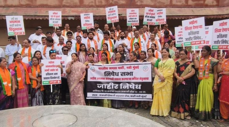 प्रधानमंत्री मोदी की दिवंगत मां के अपमान पर नवी मुंबई में भाजपा का विरोध प्रदर्शन